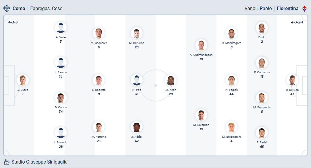 Como đang thể hiện phong độ cực tốt mùa giải này dù không phải đội có chất lượng đội hình mạnh, họ đứng thứ 6 trên bảng xếp hạng và hoàn toàn có thể nghĩ đến chiếc vé dự cup châu Âu vào cuối mùa. Điều các cầu thủ của HLV Cesc Fabregas cần làm đương nhiên là tiếp tục chơi như chính họ đã làm thời gian qua, các cầu thủ Como đặt mục tiêu giành chiến thắng ở vòng 25 này. Fiorentina đã xuống rất nhiều so với mùa giải trước đó nên giành chiến thắng không phải nhiệm vụ khó khăn với Como, nhiều khả năng đội chủ nhà sẽ có được điều mình cần.